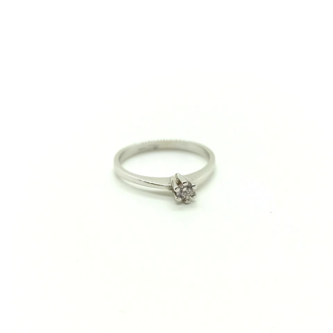 Anillo Cintillo Oro blanco 18k 2gr piedra central 6 grifas