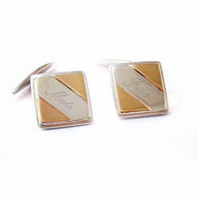 Gemelos de Plata con 2 apliques de oro 18k a relieve.